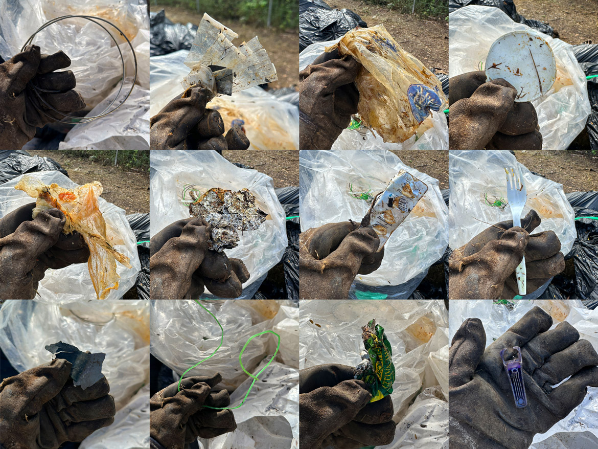 Of course, a constant in the compost business is trash. Hard to believe, but we pulled out all of these pieces of trash, along with a few others, just while turning this batch today. We also pulled out multiple pieces while we built the batch, and we’ll likely pull out more pieces during each subsequent turn. If you bag your yard waste, or collect your food waste for us, please do what you can to keep the trash out.